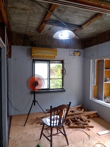 余談なのだが これは翁に小屋の改修をたのまれて 落ちていた床を直して天井のボードとかぜんぶひっぺがして落としているところだ