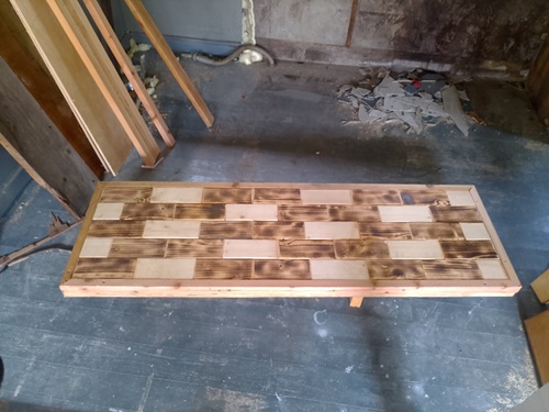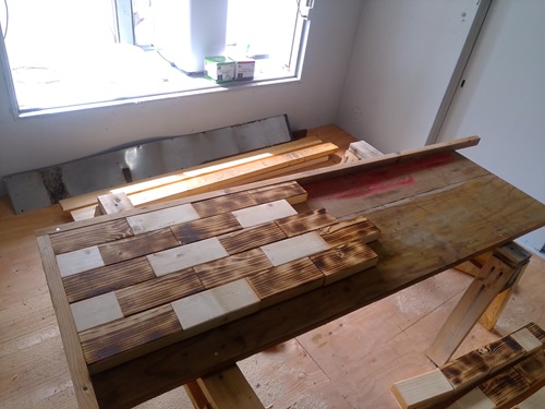 たくさんもらってきた長さ40cmぐらいの2x4を半分にして そのままのとバナーで焼いたものを用意
