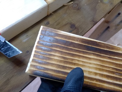 ちなみにけずるのも焼いた後の方がこやって縁が白くなるので隣と隙間できるので良い感じ
