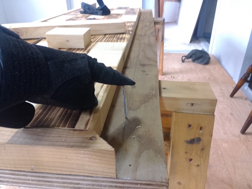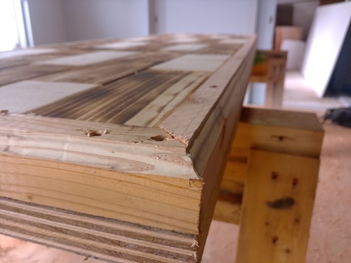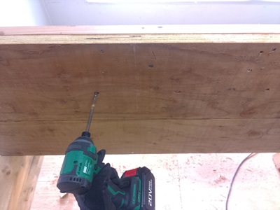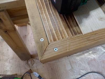 ってことで28mm厚の合板を二枚つないで奥と左側に枠を止めておいた