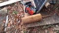 ますは 横にたおしてサイドからごついバールを継ぎ目にぶっさして大きいハンマーで打ち込んでいく