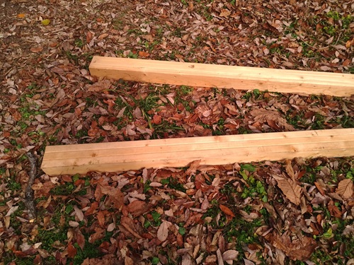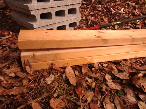 したに通しで一本ながしましてー 地面にブロックおきましてー 丸太をいれていくだけ
