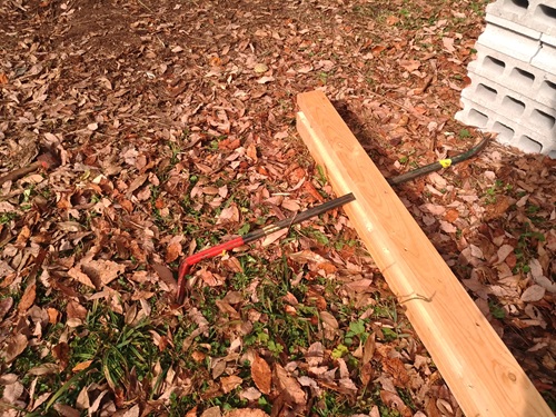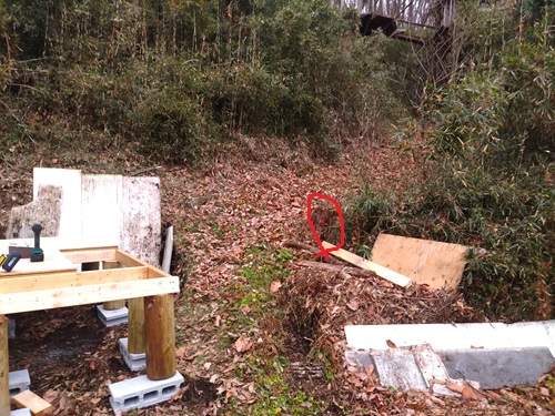 たいたい図面書いたときにこの辺まで来るのは想定済みだったしね そのためにビニール薪小屋解体して左にスペースつくったわけだし