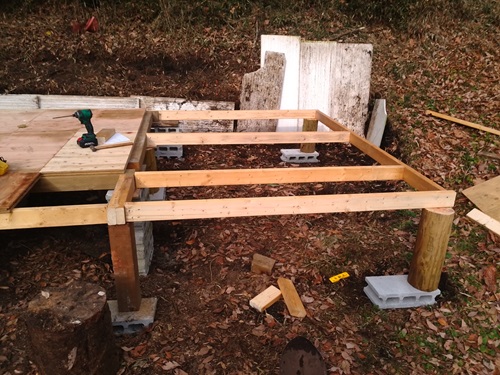 木材確保できたのでそれつかって右側に寝室部分を拡張している