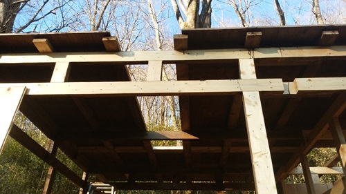 本来この上にもう一個屋根を作る予定でいたんだけど材料不足で急遽このまま屋根になってしまったのらw