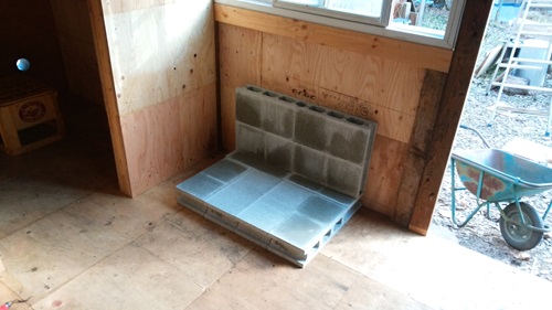 今住んでいる小屋は中央だけが 上にパカっと開く丁番でとまっているだけの作りで あけるには頭で支えながら中の物を取っていたがスライドの方が楽そうなので 今回はスライドを採用