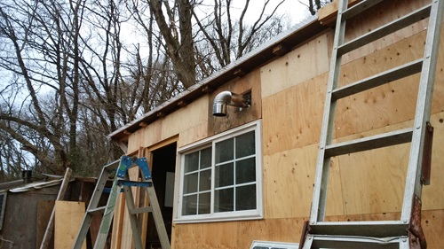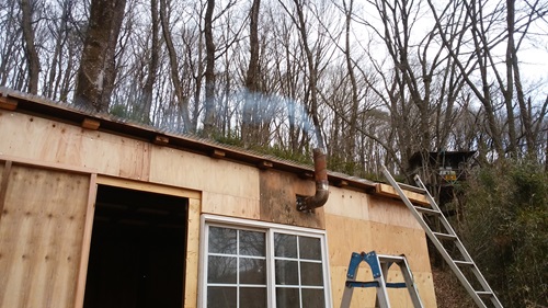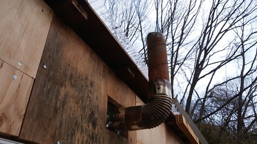 あーよかった なんとか波板の上までエントツでたので変形しないですみそうだ