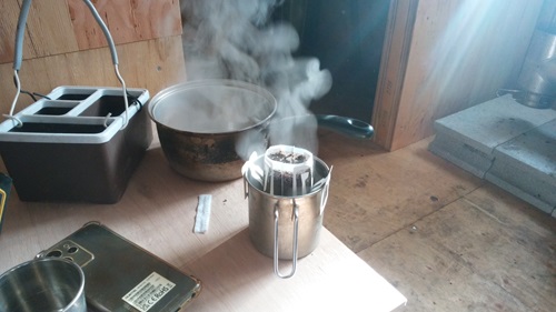 薪ストーブつけて上でお湯わかしたら コーヒーでも飲みつつ作業すっかな