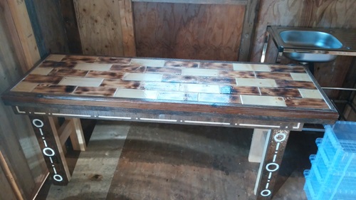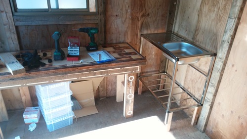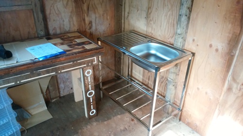 台の方も加工して テーブルと流し台が並びではいるようになった
